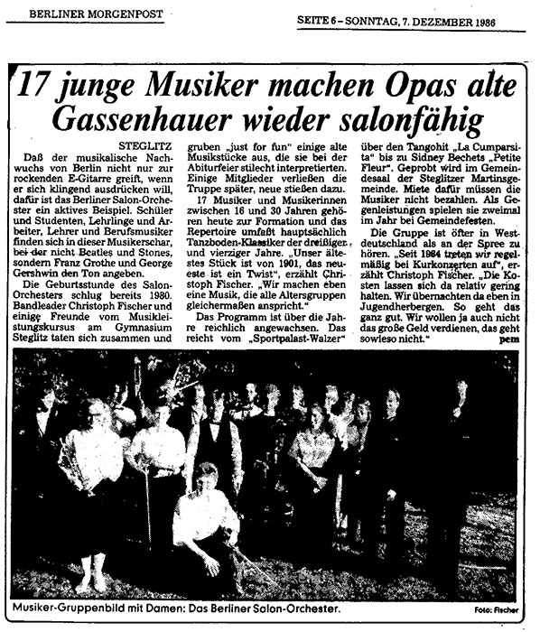 Zuvor - im Frühjahr 1986 - hatten sich einige Musiker vom Salonorchester getrennt, um sich selbständig zu machen und dafür auch fast